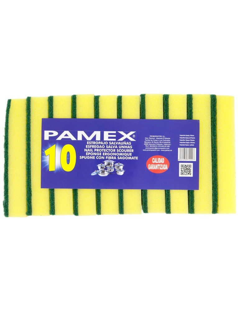 ESTROPAJO CON ESPONJA 14x10x2,5 CM – PAQ. 10 UDS